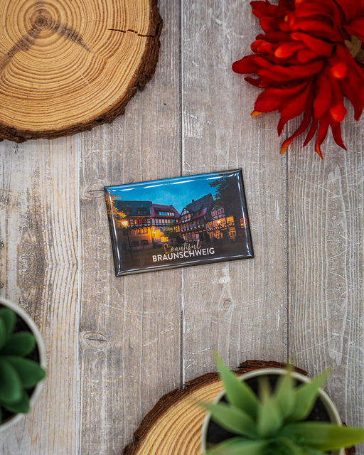 Hochwertiger Kühlschrankmagnet mit dem Motiv des Braunschweiger Magniviertels. Format 44 × 68 mm – ein charmantes Andenken und perfektes Geschenk für Braunschweig-Liebhaber.